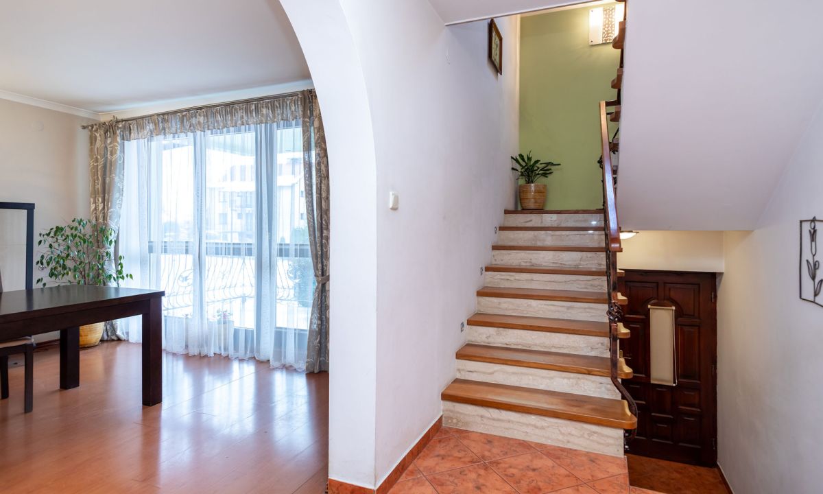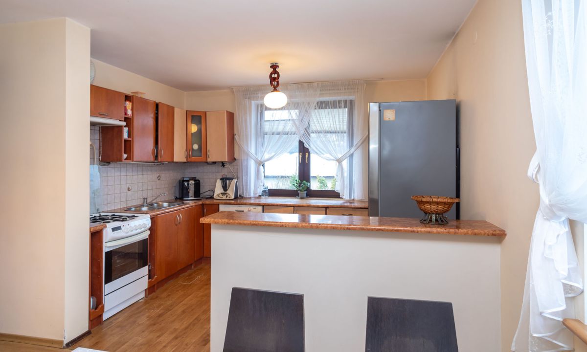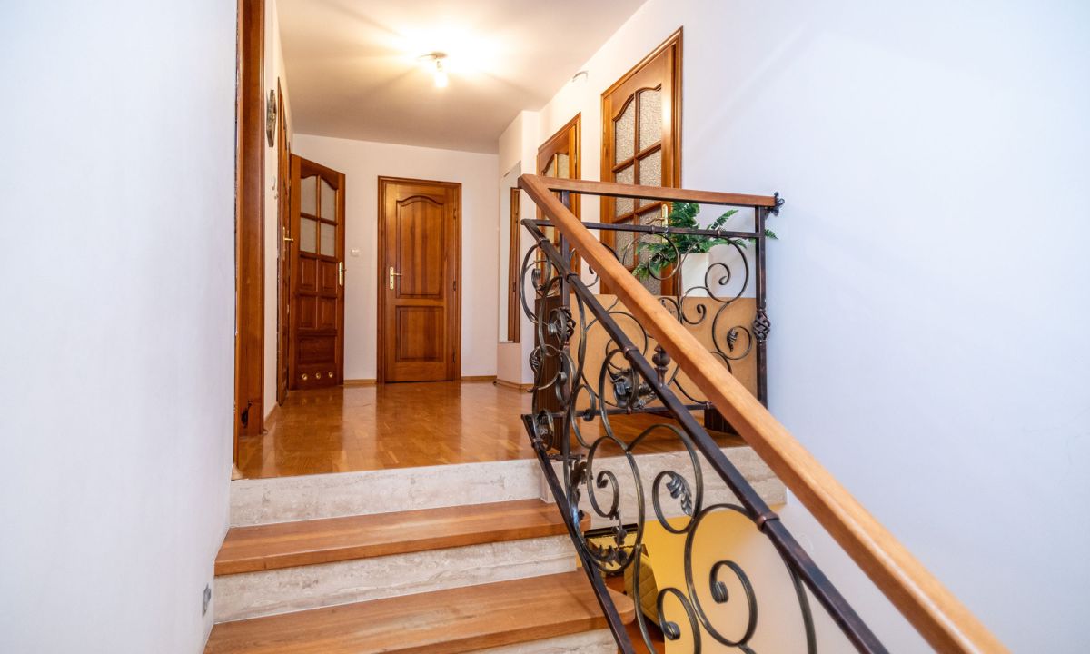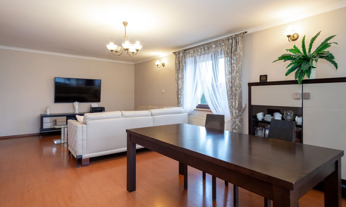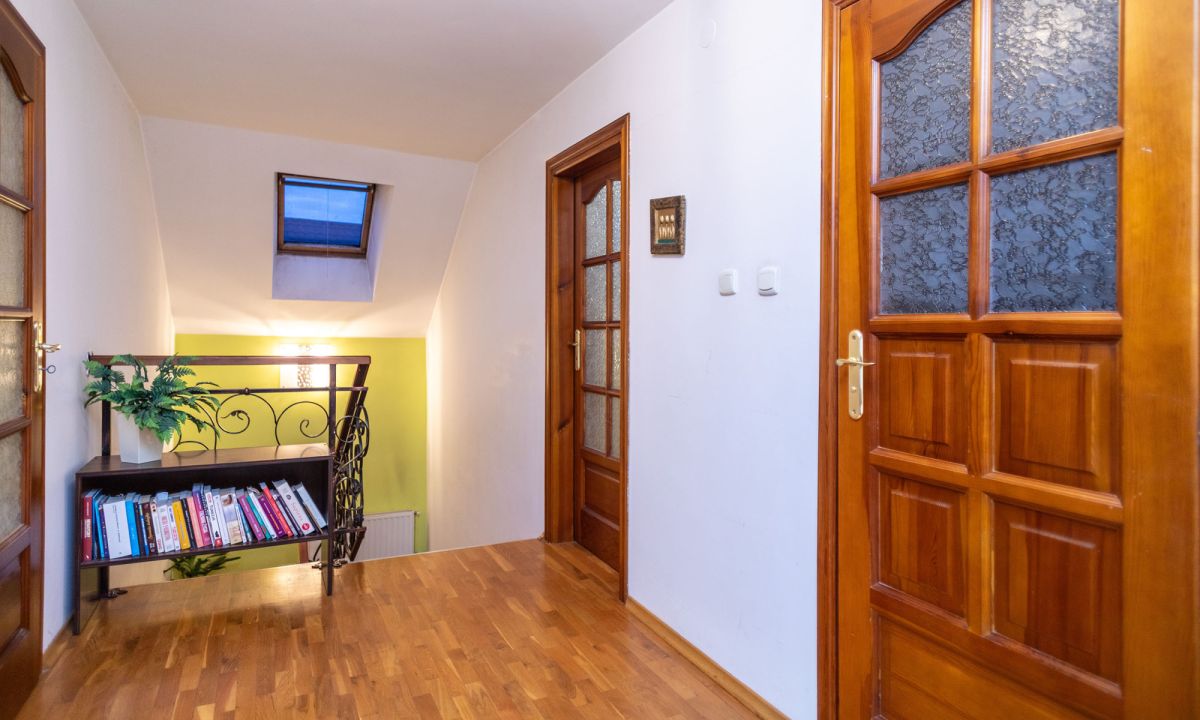 Na sześcio arowej działce w południowej części Bochni z wystawą południową znajduje się parterowy dom z użytkowym poddaszem, garażem o łącznej powierzchni użytkowej 155 m2.