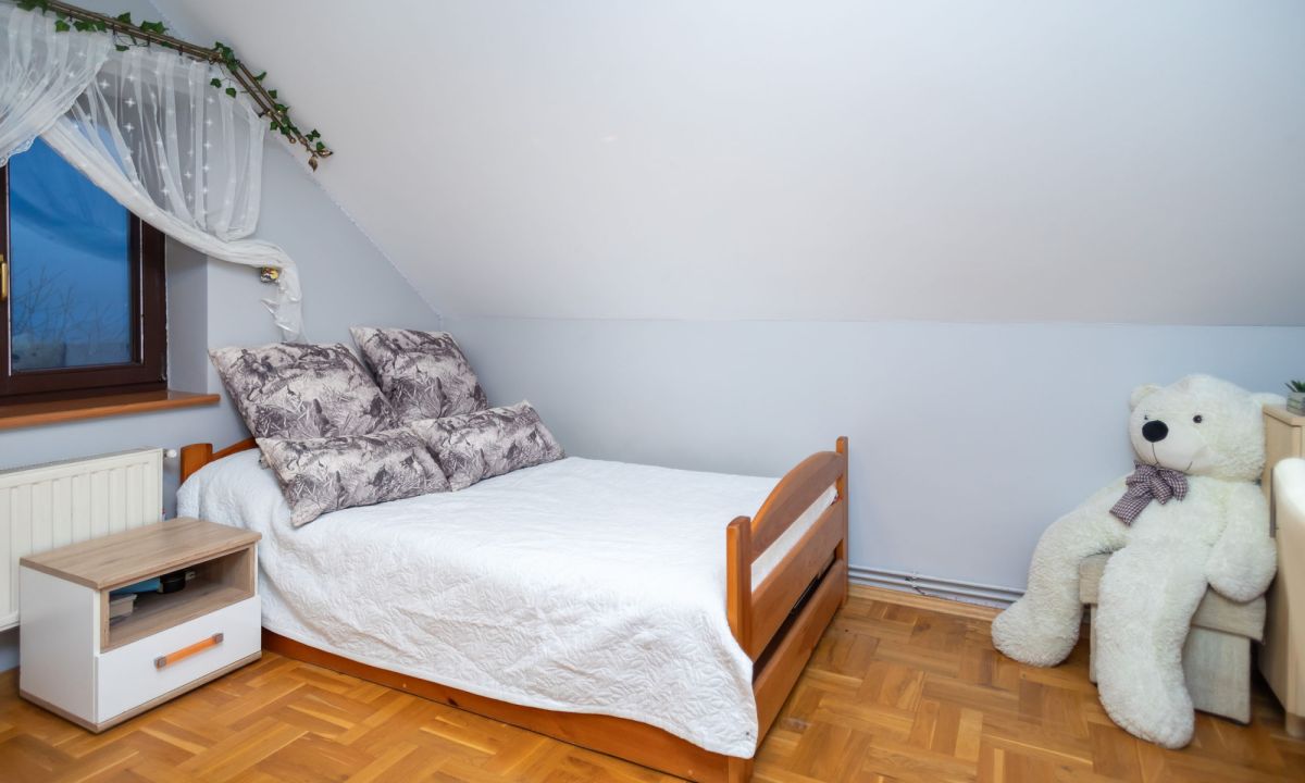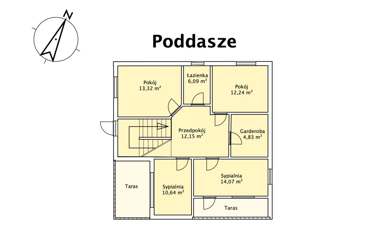 Na poddaszu 4 sypialnie, garderoba i łazienka ( do wykończenia).