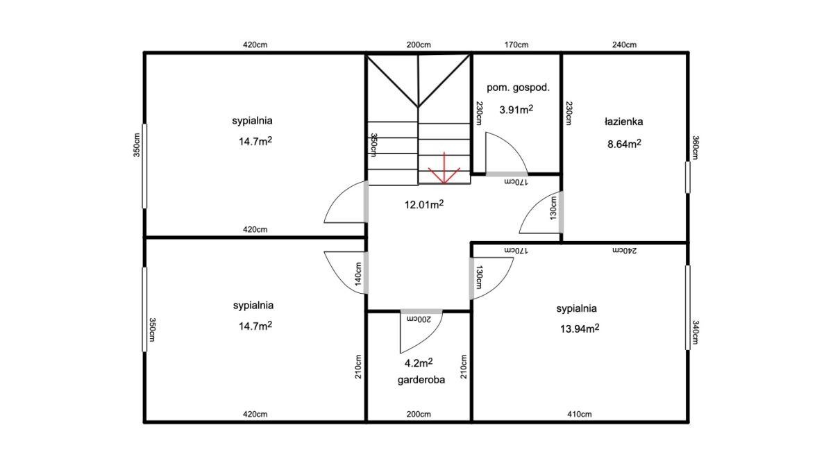 - Gabinet/dodatkowa sypialnia (8,50 m²)