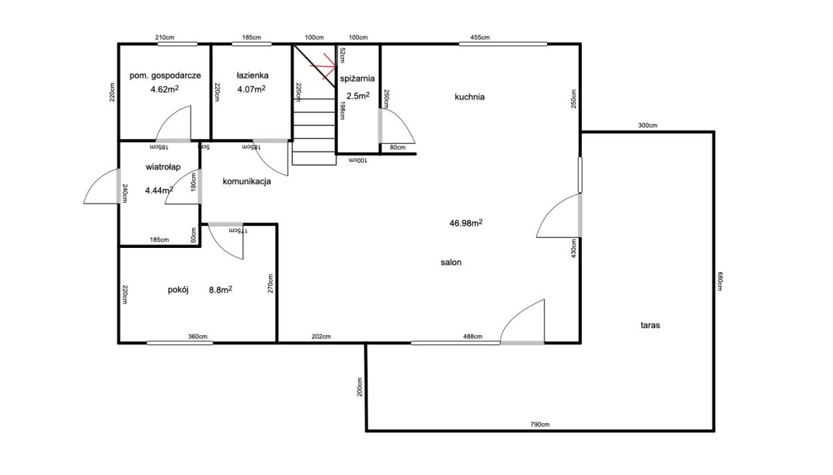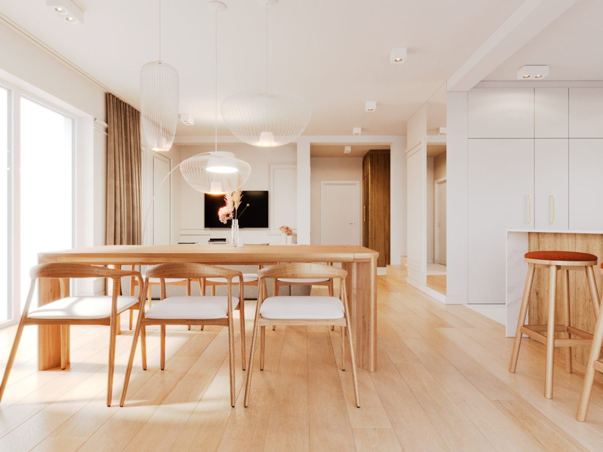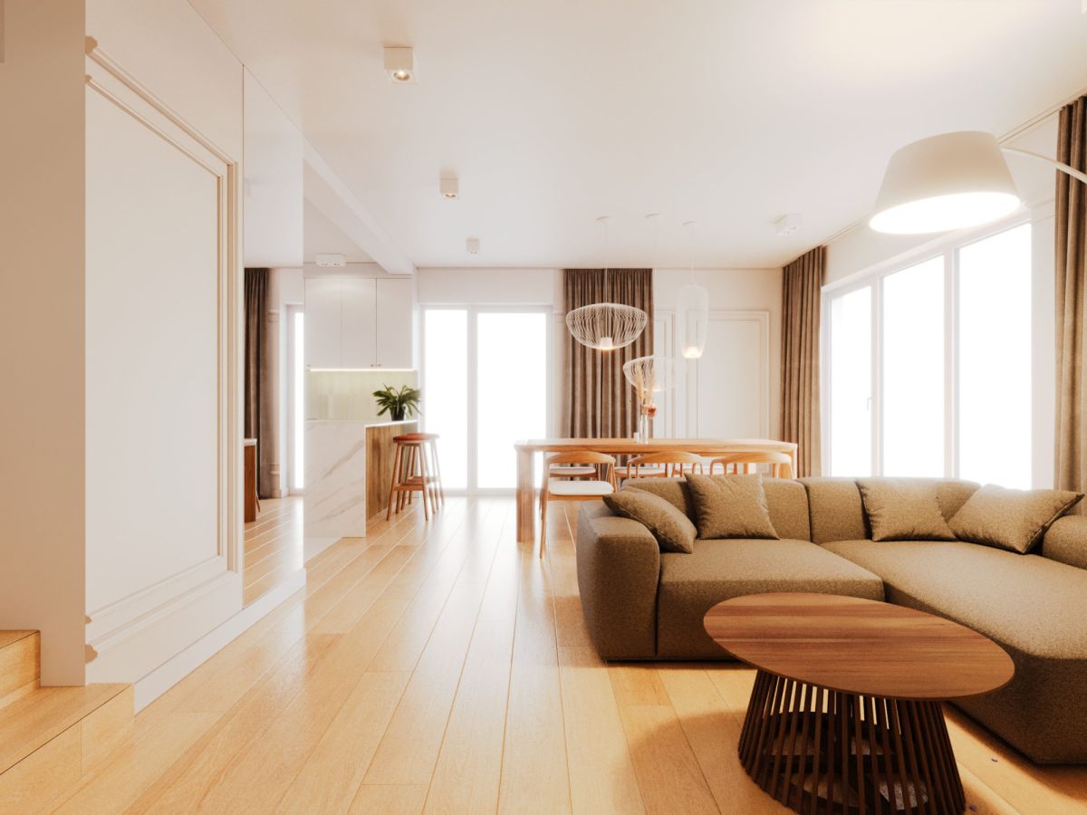- Przestronny salon z kuchnią (39 m²) z bezpośrednim wyjściem na taras