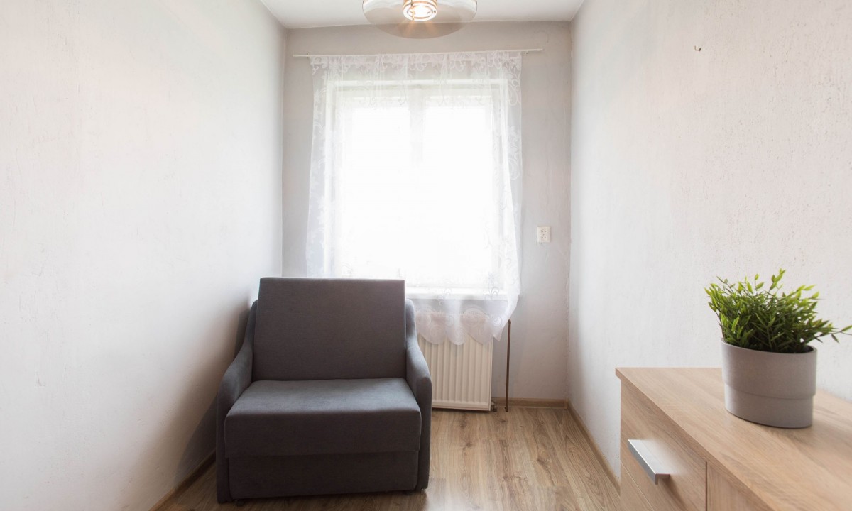 Trzy pokoje, kuchnia, łazienka ,przedpokój.