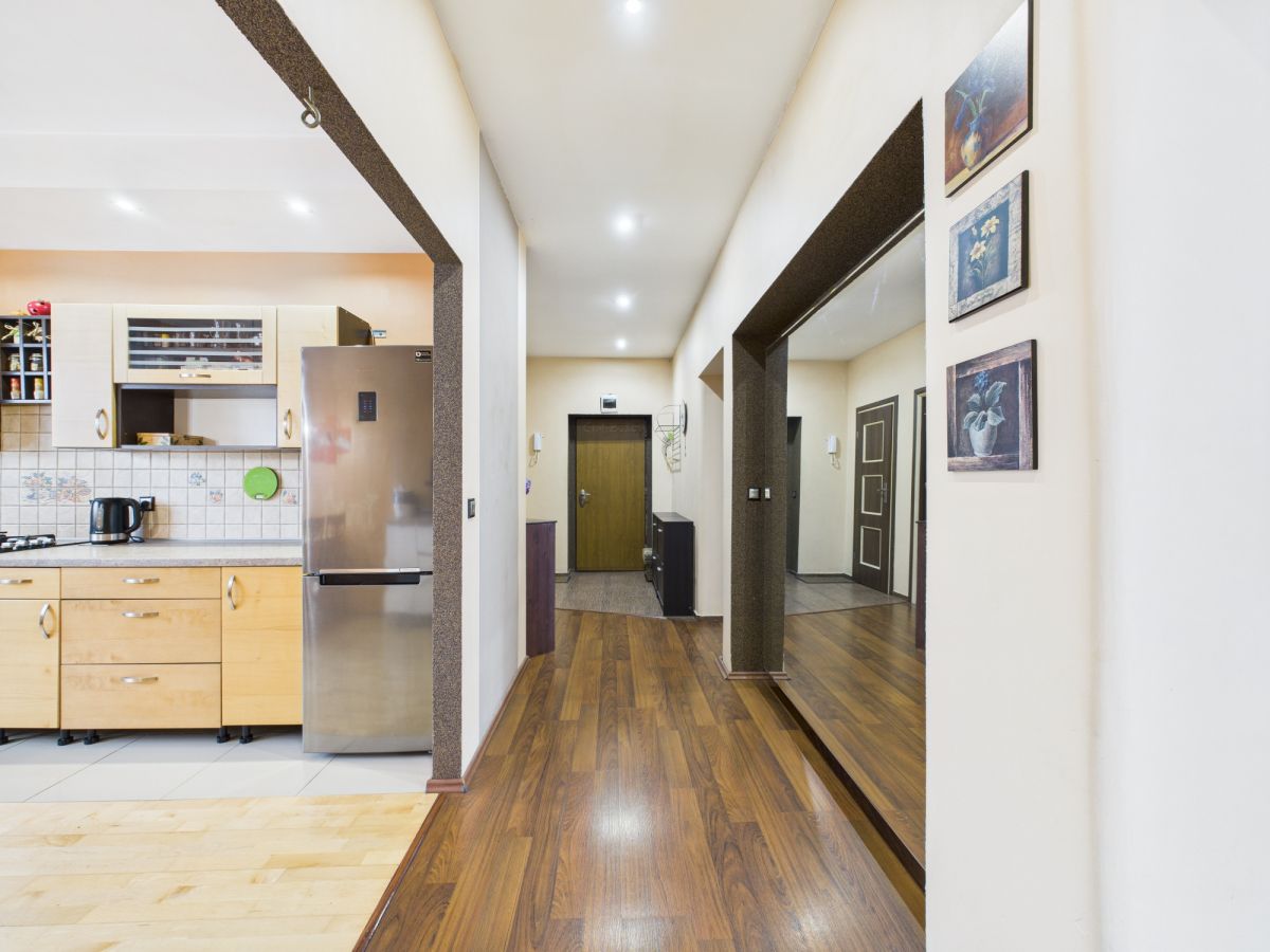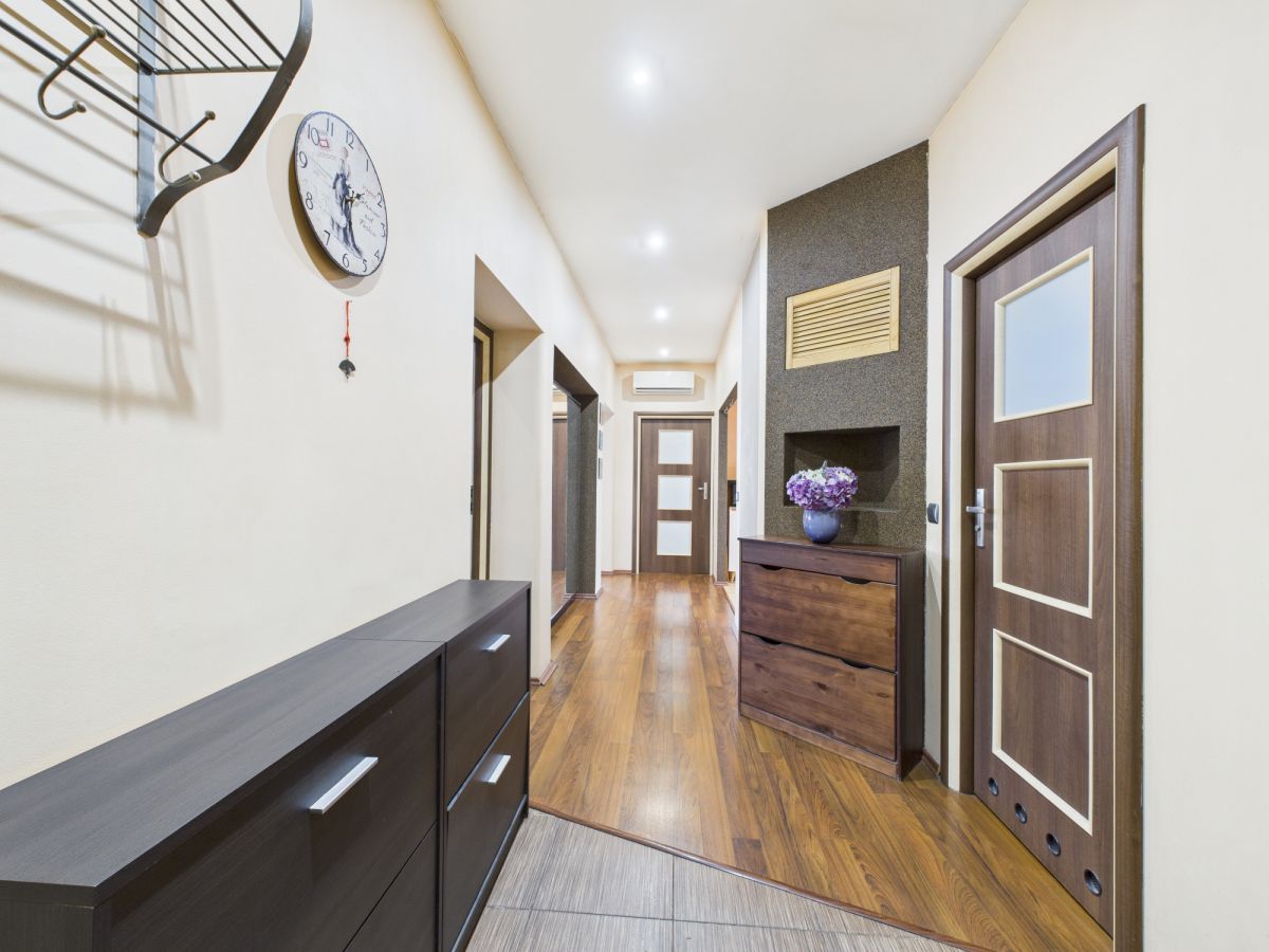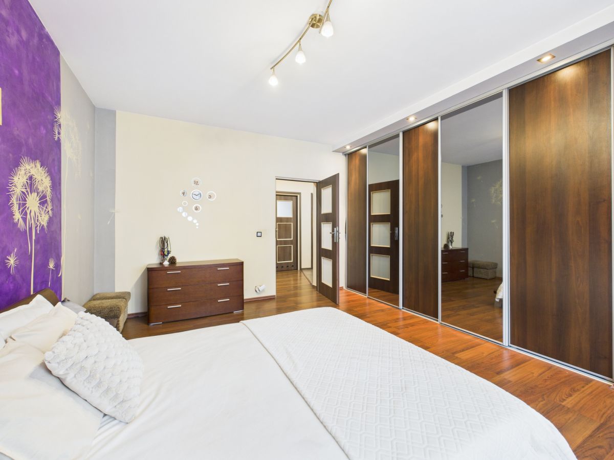Mieszkanie jest wyjątkowo jasne i słoneczne — okna wychodzą na trzy strony świata: południe, wschód i zachód. Układ pomieszczeń daje wiele możliwości aranżacyjnych, zarówno dla miłośników klasycznego stylu, jak i nowoczesnych rozwiązań.