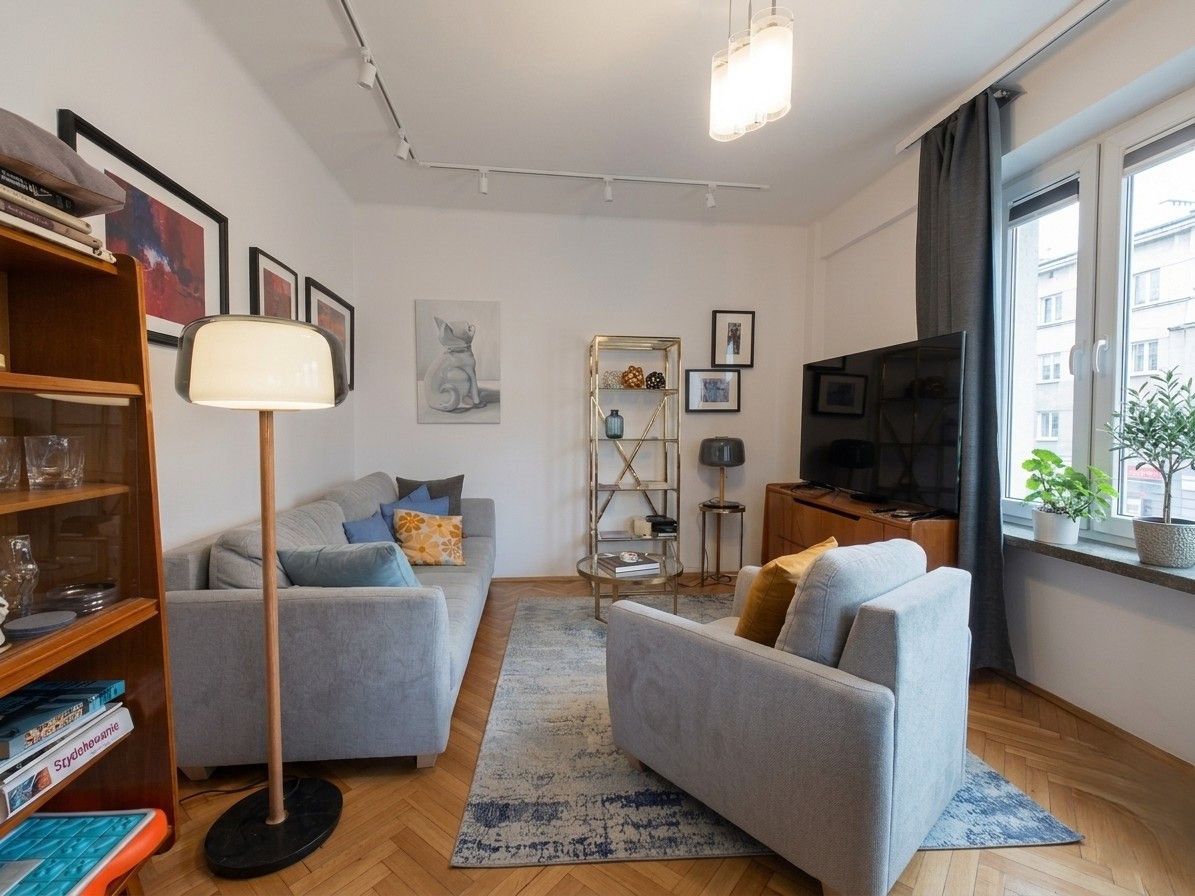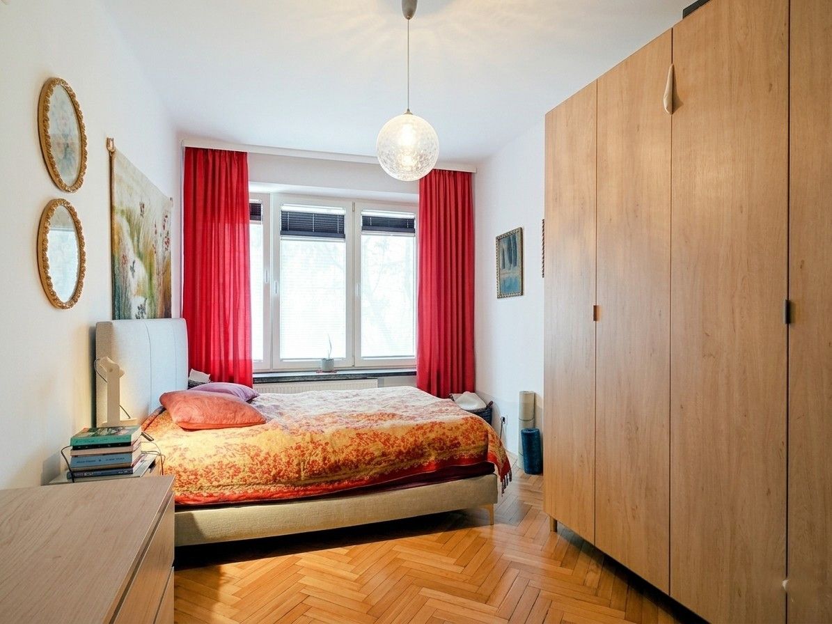 W pokojach na podłodze jest oryginalny parkiet w jodełkę, w kuchni i łazience terakota. Duże, narożne okna PCV. Do mieszkania przynależy piwnica.