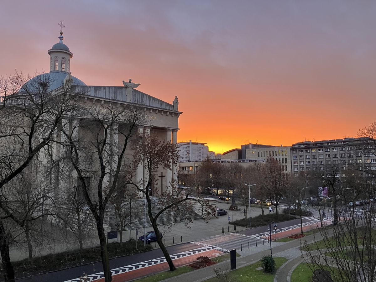Masz też do dyspozycji balkon z widokiem na modernistyczną Katedrę i wyobrażam sobie, że można tu na krzesełku wypić kawkę.