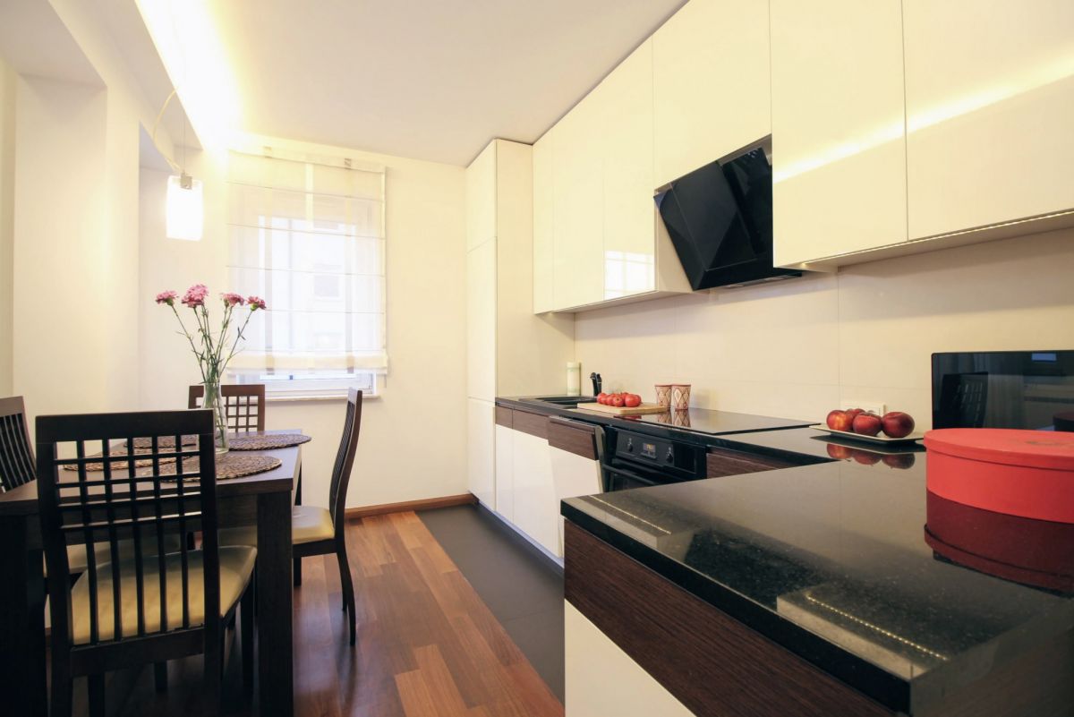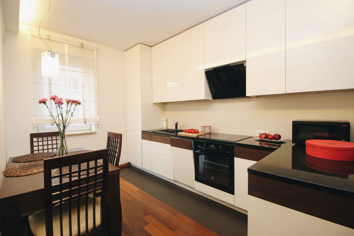 Położone jest na trzecim piętrze 7-mio pietrowego budynku z 2008 roku przy ul. Marchołta. Ma powierzchnię 42m2 i składa się z: hallu, pokoju dziennego z aneksem kuchennym, sypialni i łazienki. Mieszkanie jest klimatyzowane i wyposażone w niezbędne sprzęty: piekarnik, płyta indukcyjna, zmywarka, lodówka, mikrofala, telewizor, pralka. Balkon na stronę południowo-zachodnią, garaż w bryle budynku a przed nim dodatkowe miejsce postojowe. teren ogrodzony, wjazd przez szlaban.