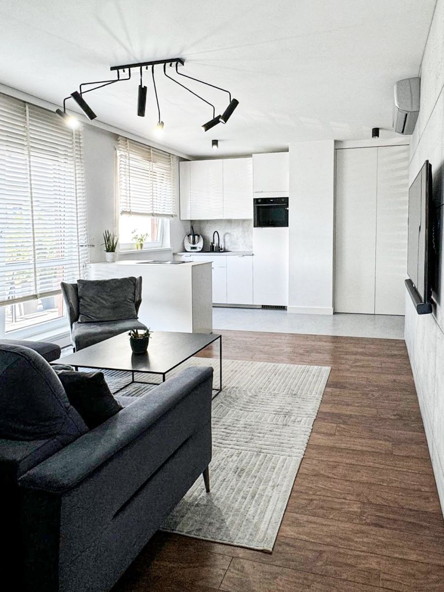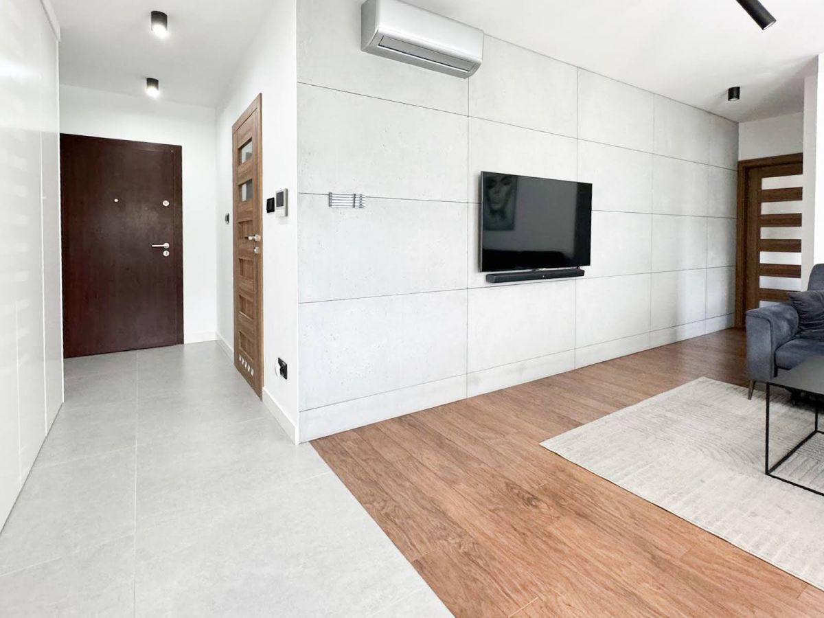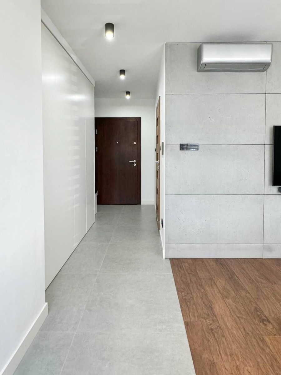 W pełni umeblowane i wyposażone mieszkanie z klimatyzacją, gotowe do zamieszkania od zaraz! Składa się z: przestronnego salonu z aneksem kuchennym, sypialni z dużym łóżkiem, małego pokoju na gabinet lub pokój dziecięcy, łazienki z wanną i hallu z pojemną szafą. Wnętrze urządzone w eleganckiej palecie szarości, bieli i drewna. Dodatkowo: rolety zewnętrzne, żaluzje, klimatyzacja.