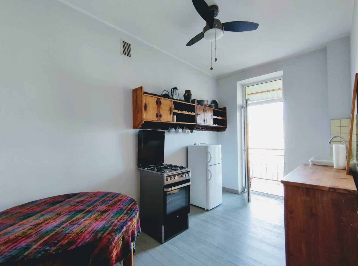 Dwustronne, duży pokój na zachód (na ul. Prusa), mały pokój na podwórko, kuchnia osobna, jasna z balkonem, łazienka z oknem.