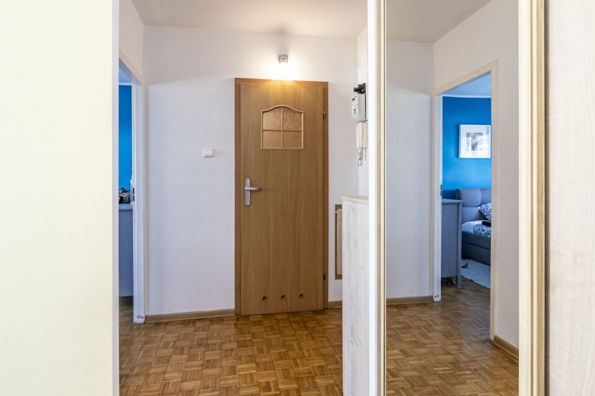 Zadbana klatka schodowa, 2 windy. Dziedziniec z nowymi nasadzeniami. Dwa w pełni umeblowane pokoje i w pełni wyposażona kuchnia. W sypialni i przedpokoju duże szafy. Duży balkon dodatkowo zabezpieczony dla kota.