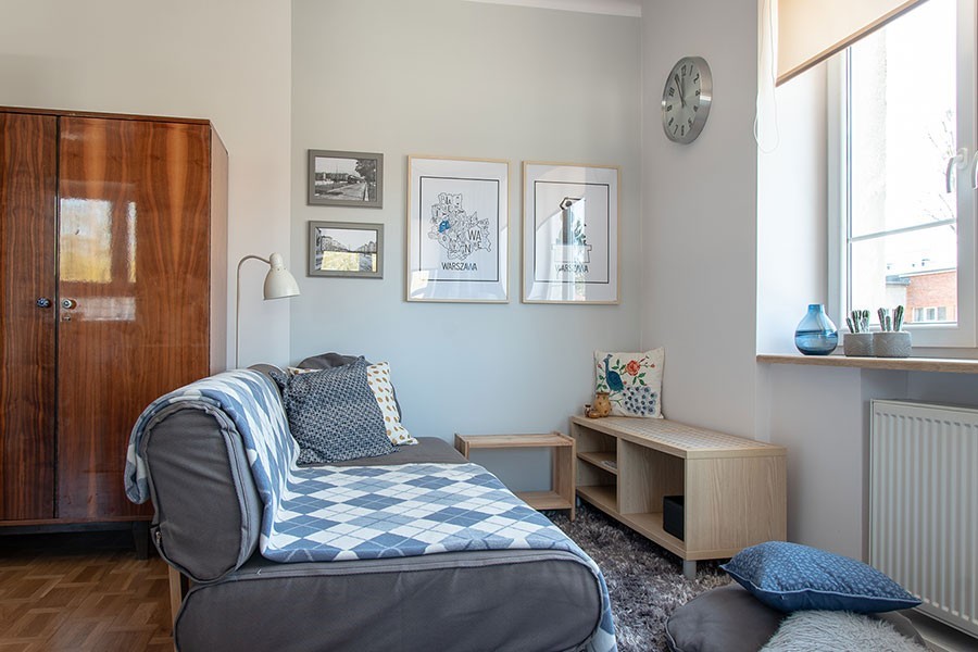 Zabytkowe osiedle z lat trzydziestych ubiegłego roku. Kawalerka z pietyzmem odnowiona przez parę architektów wnętrz. Mieszkanie z wyjątkowym klimatem miejsca, w doskonałym punkcie komunikacyjnym, a do tego niezwykle jasne, bo ma aż 3 duże okna od dwóch stron świata.