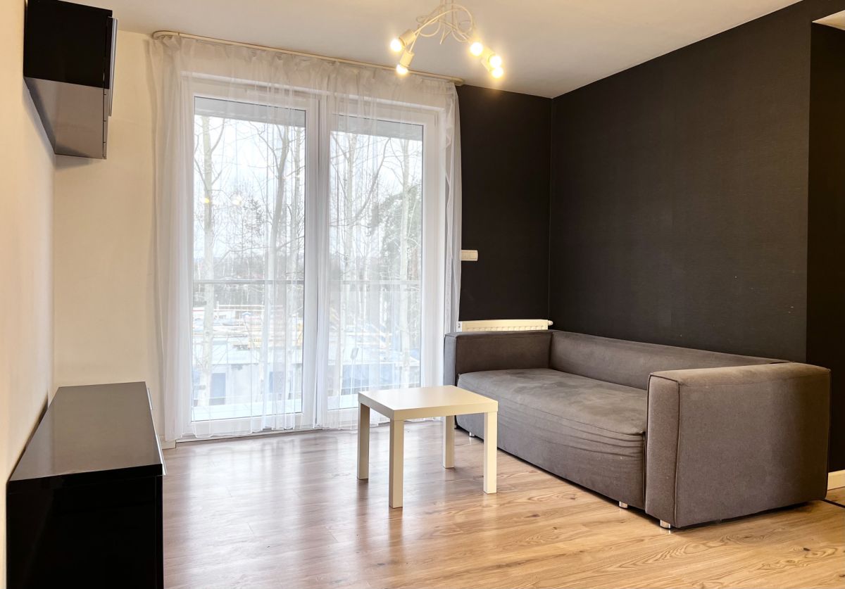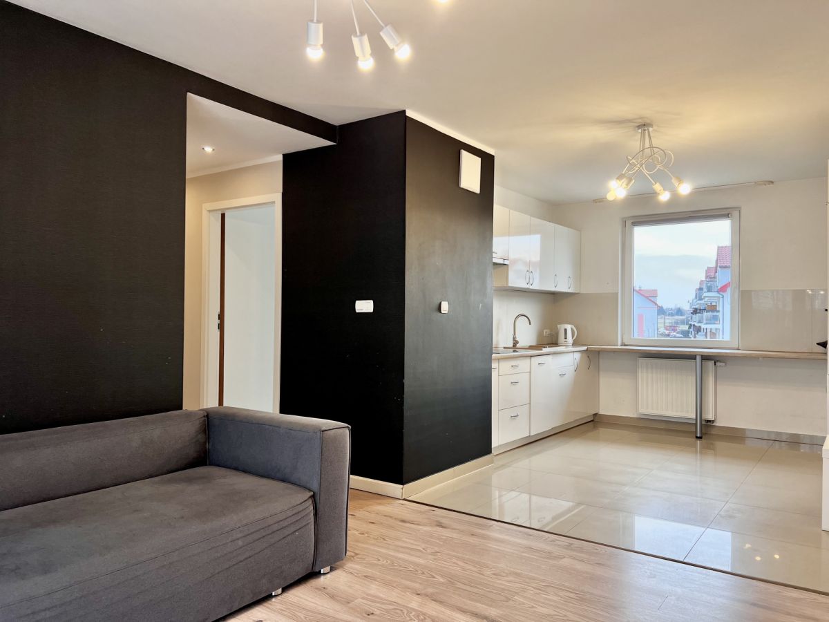 -Salon z aneksem kuchennym i wyjściem na duży, narożny balkon