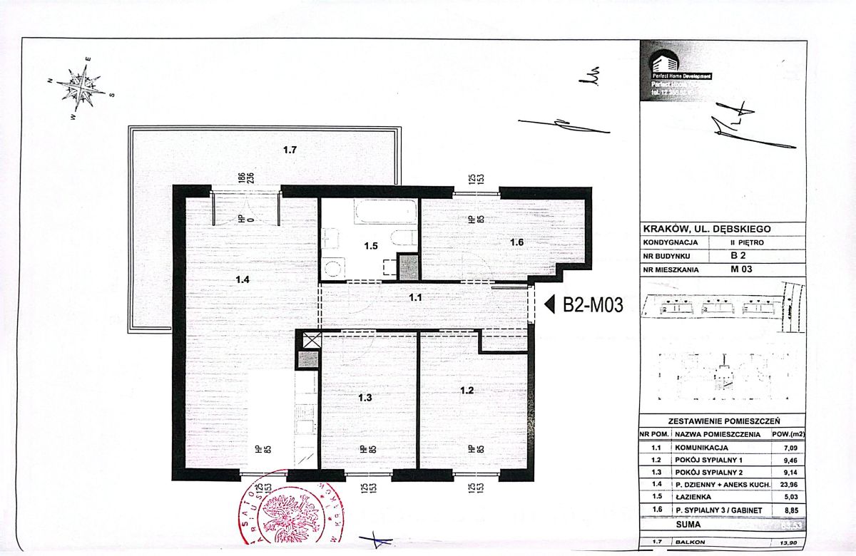 Przedmiotem oferty jest mieszkanie o powierzchni 63,69m², położone na drugim piętrze trzypiętrowego bloku, na kameralnym, zamkniętym osiedlu przy ul. Dębskiego w Krakowie.