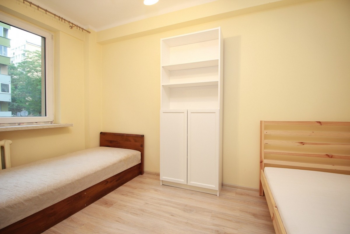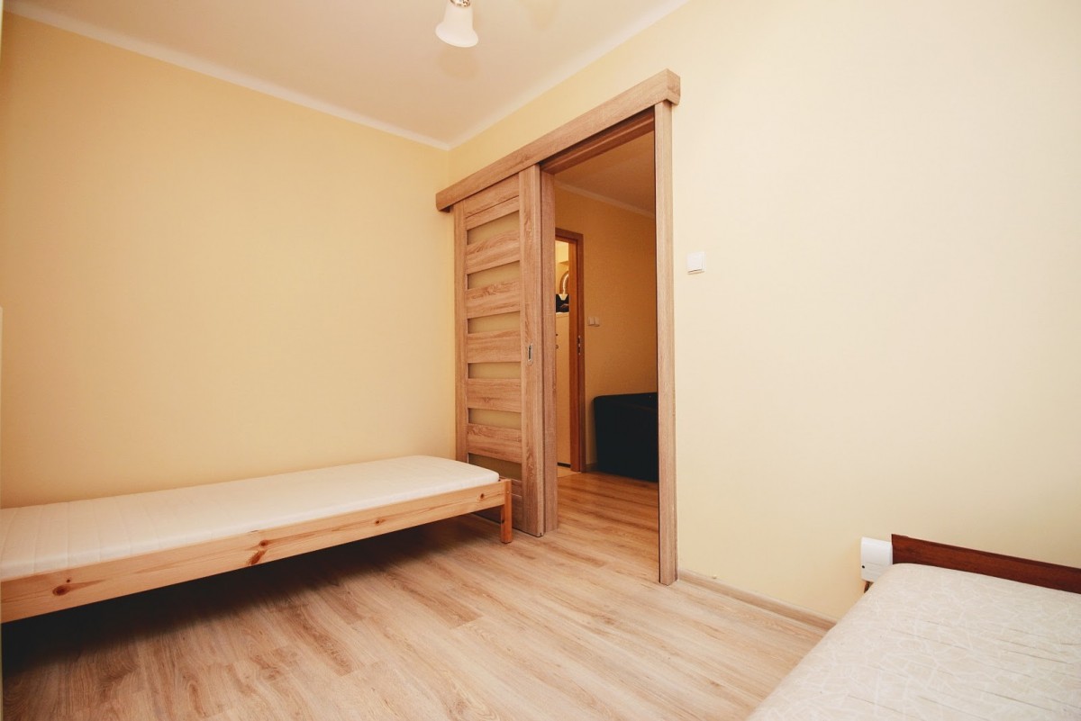 Pokoje są wyposażone w szafę, dwa regały, łóżka. Pralka i lodówka w aneksie. Kuchenka gazowa. Ogrzewanie i ciepła woda z sieci miejskiej, czynsz spółdzielczy: 623,36 zł.